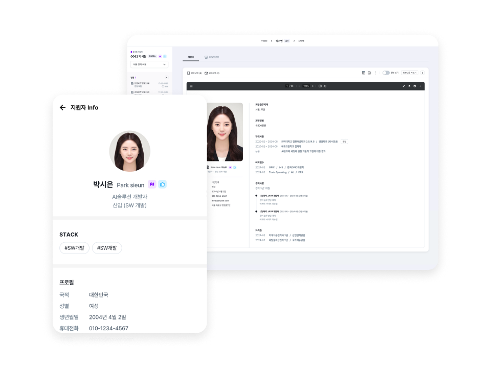 모바일에서도 채용을 관리할 수 있어요. 관리자는 지원 현황을 확인하거나, 지원자를 확인할 수 있습니다.